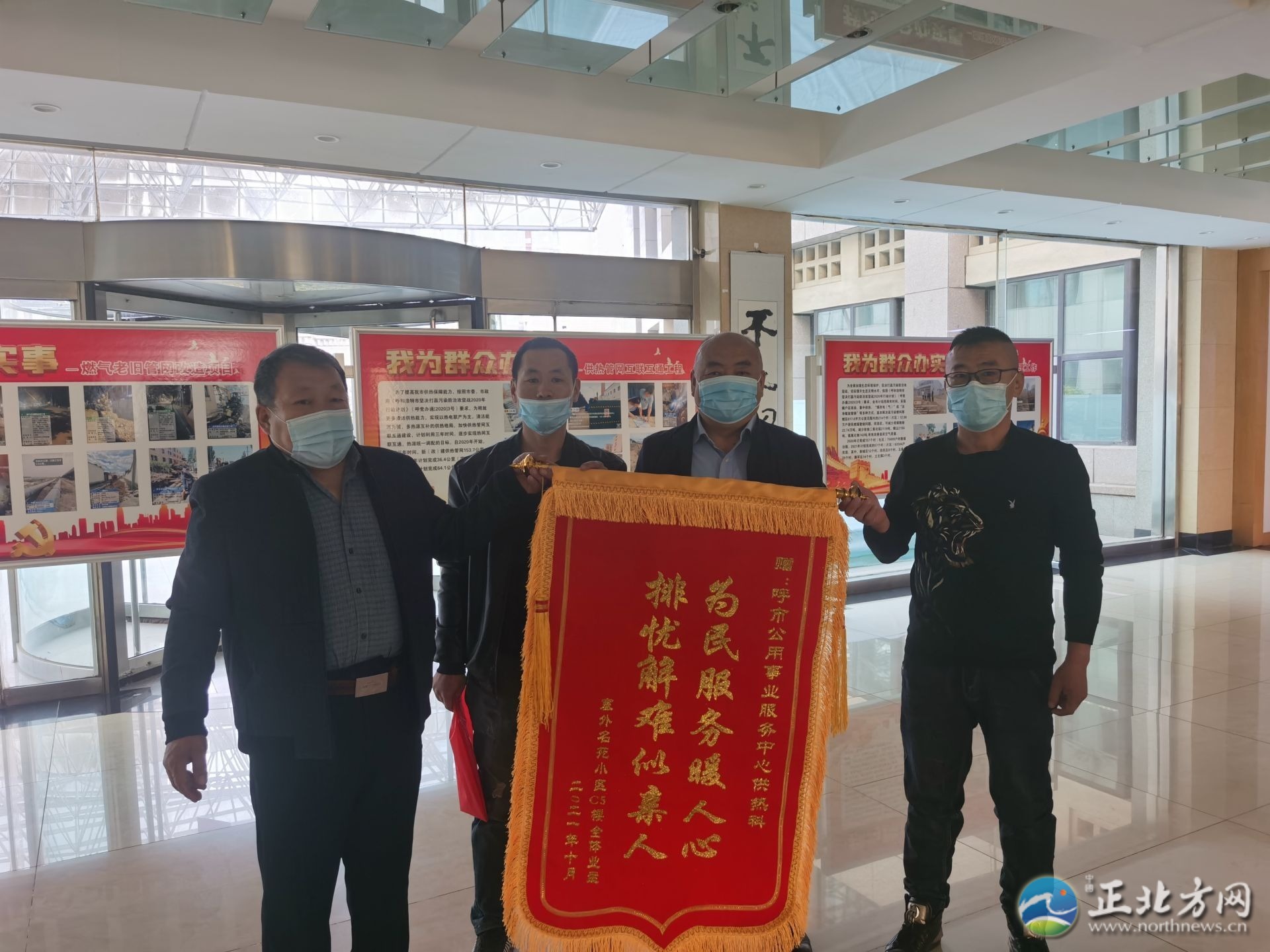 正北方网讯(北方新报正北方网记者 郑慧英)“如果不是你们多次协调,今年冬天我们这栋楼的居民怕是要挨冻了,感谢你们帮我们解决了供热难题。”11月4日一大早,家住呼和浩特市玉泉区塞外名苑小区C5号楼的居民李春凤和另一名业主来到呼和浩特市公用事业服务中心供热科,将一面写有“为民服务暖人心 排忧解难似亲人”的锦旗送到工作人员手中,代表C5号楼全体业主对他们的帮助表示感谢。