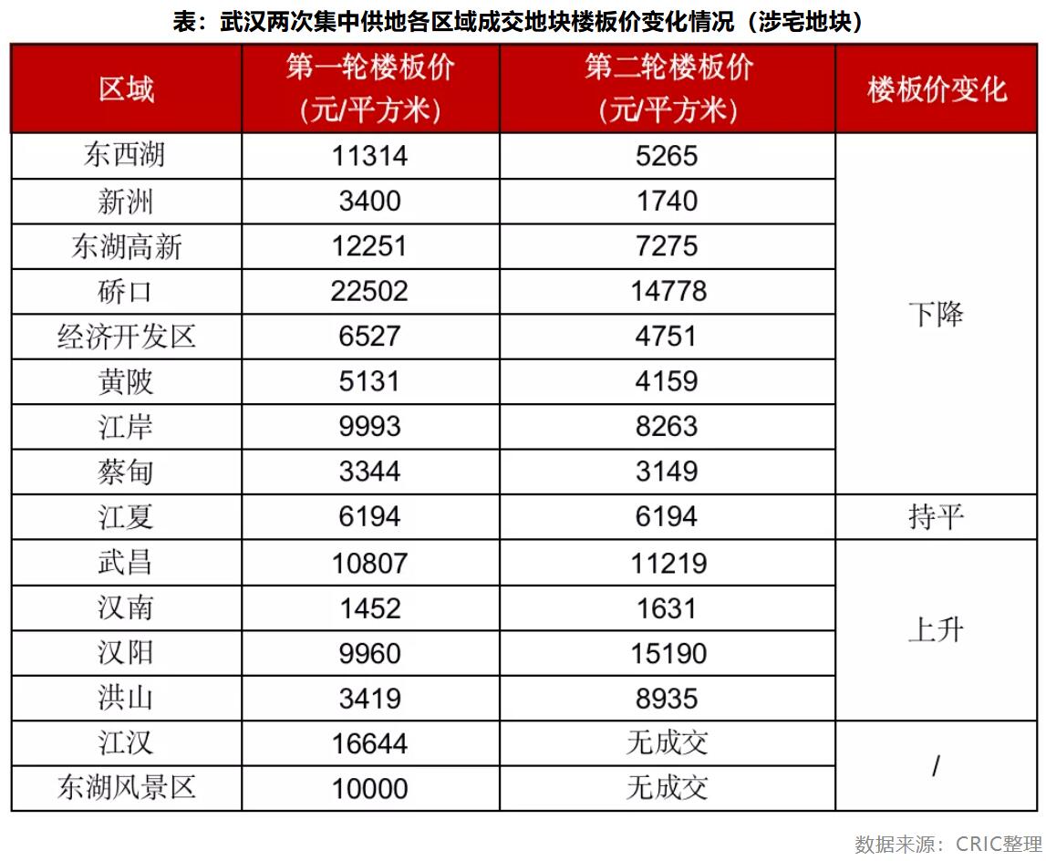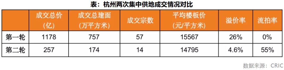 要知道,在首轮集中土拍中,杭州和武汉均出现过“地王”,与此形成鲜明对比的是,二轮集中土拍热度大降,杭州流拍率高达55%,武汉32幅涉宅地块几乎全部底价成交。