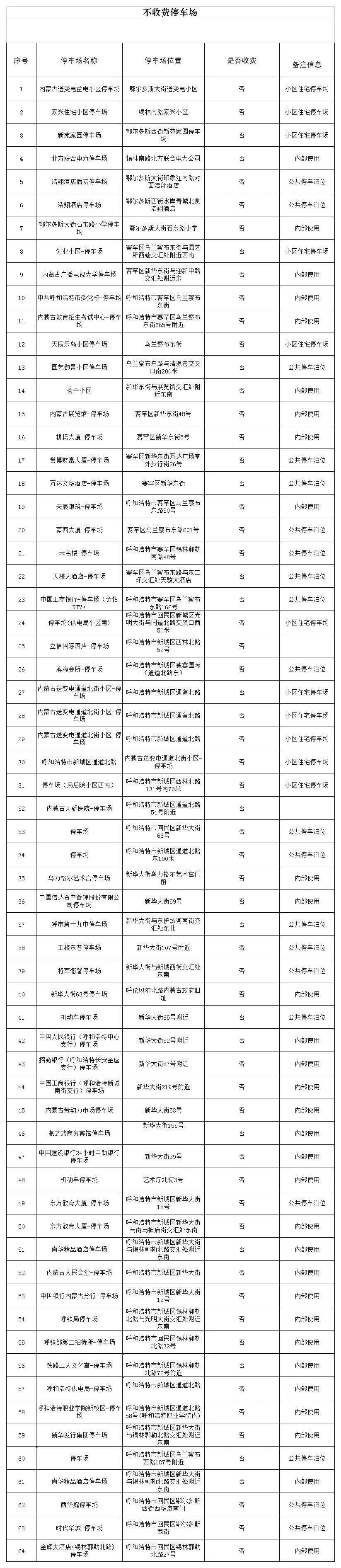 附:停车场清单(不收费停车场64处,收费停车场47处)