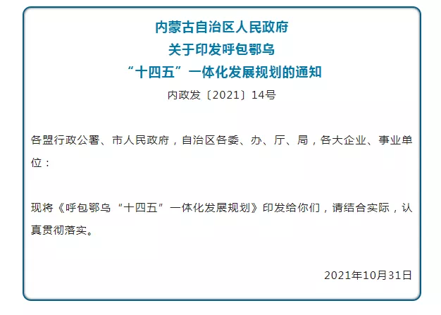 内蒙古印发:呼包鄂乌“十四五”一体化发展规划(建议收藏)
