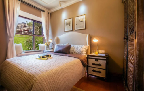 窗外园林环绕,是鸟儿们歌唱的天堂,源于大自然精灵们的鸣啾,唤醒美妙清晨,推窗即见园林美景,感受晨曦清爽的清风,美好的一天至此展开。
