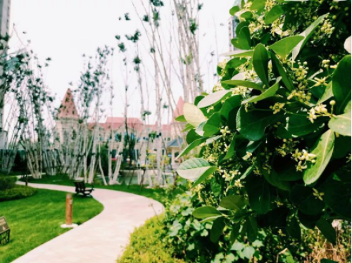 错落有致的的风情园林,曲径通幽别有风味,阳光撩拨着绿意,数不清的花卉枝繁叶茂,行走其间,宛如度假般悠然惬意。