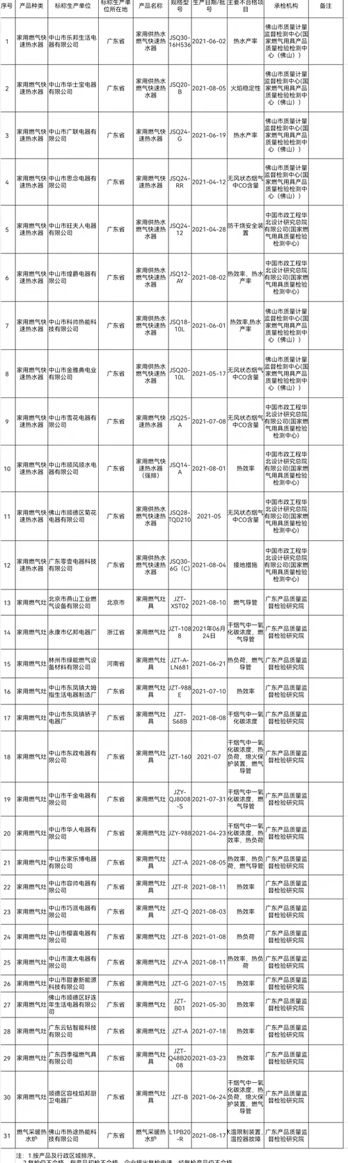 据了解,本次家用燃气用具抽查涉及广东、北京、天津、河北等15个省(市),其中产业聚集区广东省抽查了361批次,占抽查总数的83.0%,广东省的不合格发现率为7.8%。家用燃气用具的检验项目分为安全性能指标和使用性能指标,安全性能指标包括燃气系统气密性、无风状态烟气中一氧化碳含量等,使用性能指标包括热效率等。