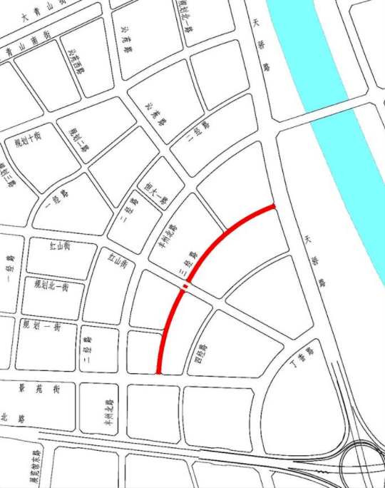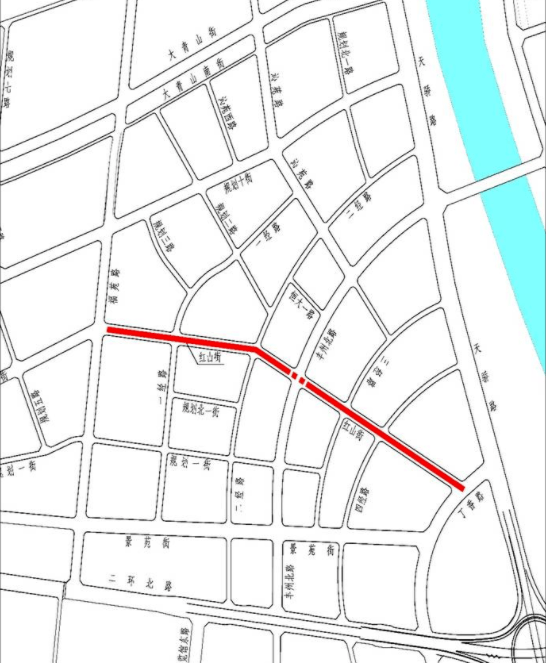 1、红山街(福苑路-丁香路)是毫沁营区域中部东西向主干路,西起福苑路,东至丁香路