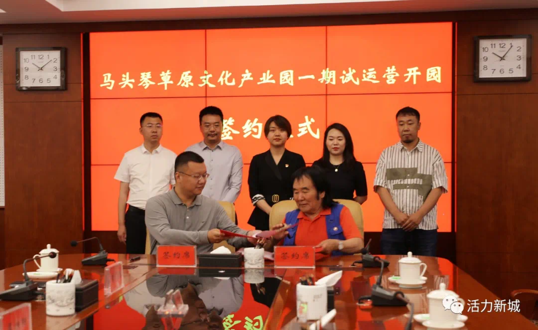6月24日上午,马头琴草原文化产业园一期试运营开园签约仪式在新城区政府西楼二楼会议室举行。大地风景文旅集团与齐·宝力高音乐工作室、马头琴百家工坊等入驻企业签约,标志着马头琴文化产业园一期发展步入了新的阶段。未来,马头琴草原文化产业园将借助知名民族音乐工作室和民族文化艺术家作为文化元素符号,打造集文化、旅游、休闲为一体的文化创意产业园。