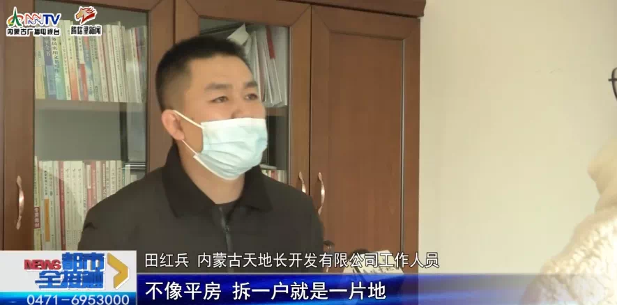 内蒙古天地长开发有限公司工作人员田红兵:因为拆的楼房,不像平方拆一户就是一片地,比如说60户一个楼,有一户不签协议就不能拆。