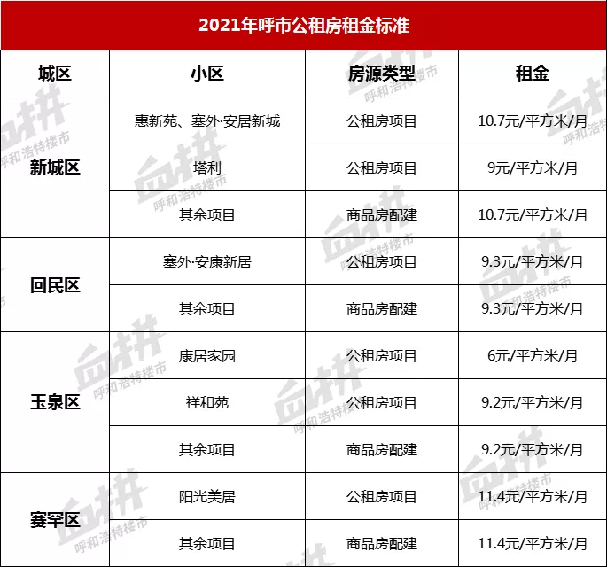 呼市各大公租房项目户型集中于30-50平米,租金情况略有差异,赛罕、新城区租金10元/月/平以上,玉泉、回民区则处于9元/平/月左右,整体支出每月300-500元/月上下,仅为呼市租房市场均价三分之一,生活负担较小。