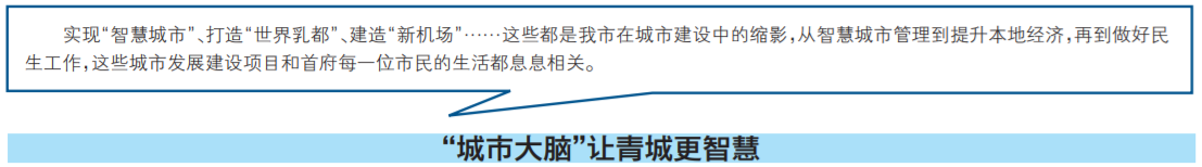 作为内蒙古自治区排名前列个城市级智能中枢,我市的“城市大脑”总体框架可以概括为“1+4+N”,“1”是指“城市大脑”运营中心,“4”是指感知体系、数据体系、安全体系和“爱青城”App这4个基础支撑,“N”是指智慧综治、智慧城管、智慧停车、智慧应急、智慧文旅、数字平安校园、蒙企通、智慧林草等应用功能。从“城市大脑”运营中心的大数据决策分析系统投入使用以来,各类数据可视化分析成为现实,有效辅助了城市运行管理,城市公共服务能力得到全面提升。