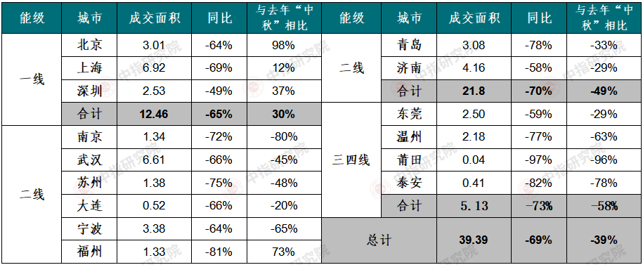 成交低迷,中秋部分城市住宅成交面积同比降近七成