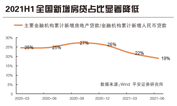 对于个别房企流动性危机会对金融系统产生怎样的影响,各家研究机构观点多数认为“影响较小”。主要基于两方面原因:一是近年来中央层面严控信贷资金流入房地产,房地产信贷规模占比连续下降。二是在房地产信贷资金中开发贷占比不大,截至2021年6月末,国内开发贷余额12.3万亿元,贷款占比仅为6.6%。个贷资金占比较大,但在房价稳定的情况下,个贷资产风险较小。