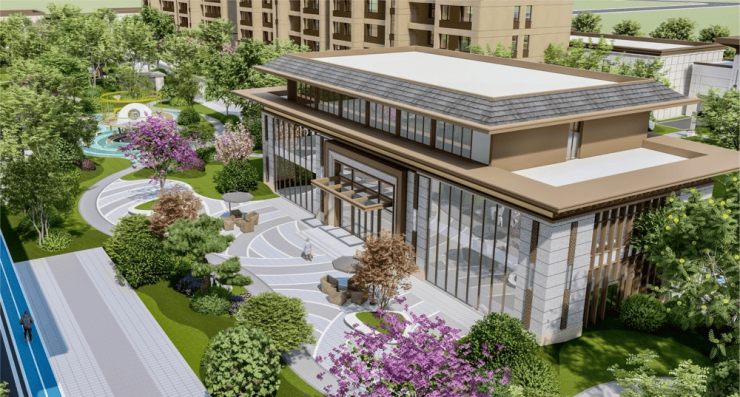在小区中心,精心打造了约1300平米的业主会所。该会所分为地下一层和地上三层,整体外形采用简约中式设计风格,既富有传统韵味又不失现代简约之美。会所包含了物业配套用房、小区活动用房、养老服务设施活动中心、乒乓球室以及业主委员会办公用房等多种功能区域,满足业主多样化的生活需求。
