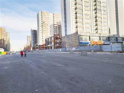 当日,记者在现场看到,整条道路都用蓝色围挡围着,路面硬化、道牙石已经全部铺设完成,由于天气原因该路段工程已经停工,但现场的物料仍没有清场,个别区域还摆放有用来硬化便道的面包砖。不少人看到紧邻南二环路的围挡被打开后都来询问是否可以通行,甚至还有市民骑着车前来探路。“以前这里就是一片荒滩,我在附近住了13年,从这里去鄂尔多斯大街也只能从展东路绕行,这次政府真是为我们办了件大事,路通了出行就方便了。”居民单先生说。