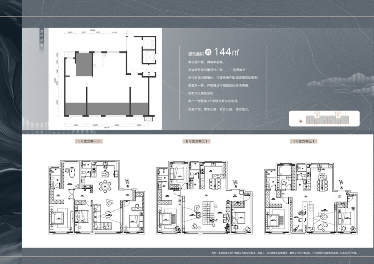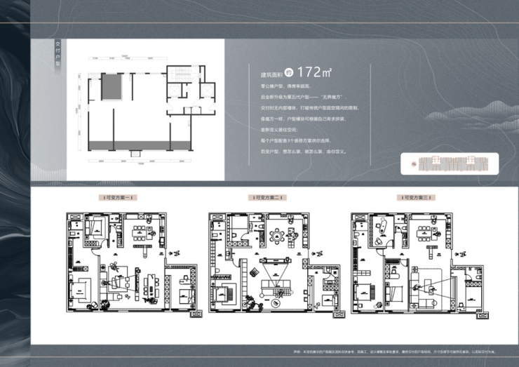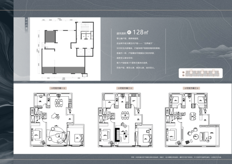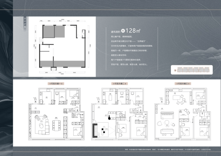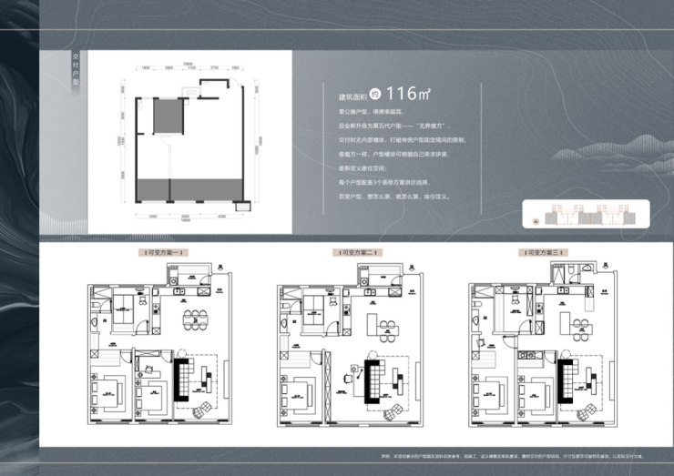 万锦山河映月推出零公摊与自由成长户型,突破传统户型固定隔间的限制,真正实现了自主设计的理念。您的家如同乐高玩具般,可依据您的主观意愿随心“DIY”。整体户型采用大开间、大进深设计,拥有更充裕的储物空间,动线设计更科学,通风路径更合理,极大提升了居住体验。该户型功能强大,能合理分区、高效收纳,动线巧妙且隐私性强,堪称功能主义户型的典范。