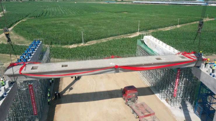 7月16日上午,S43机场高速公路项目进行首跨预制梁吊装工程。