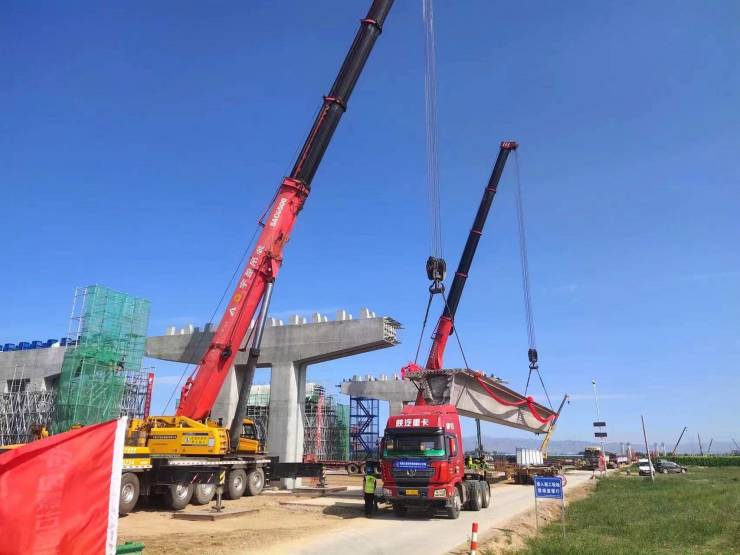 记者了解到,S43呼和浩特机场高速公路全长29.435公里,根据项目施工情况及进度安排,确定主线桥192-193号墩左幅30米预制梁安装作为首跨箱梁架设的施工首件工程,中跨边梁2片,每片重110吨;中跨中梁4片,每片重100吨。