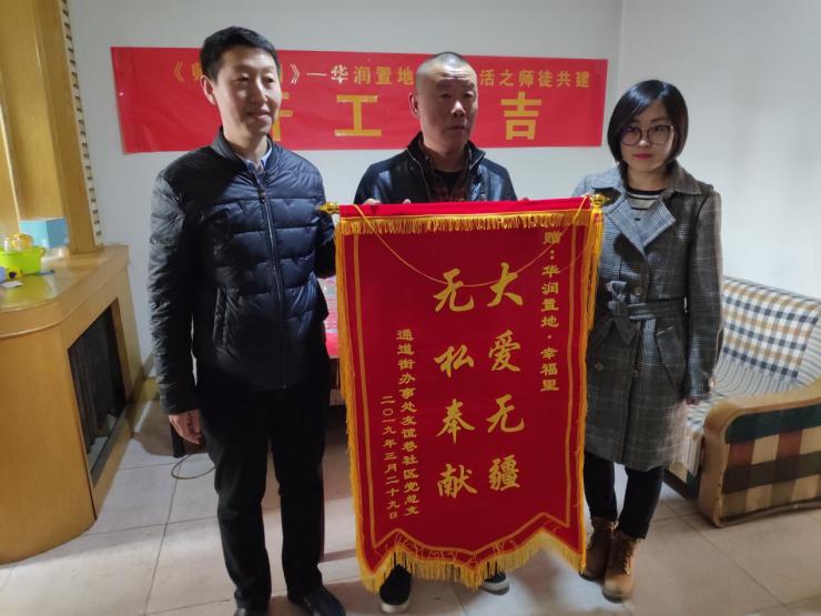 通道街办事处书记武圆圆先生和业主郭先生向华润置地·幸福里赠送锦旗