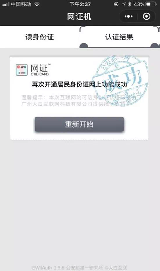 呼和浩特市公安局从2018年6月8日签发排名前列张“网证”(即电子身份证)开始。广大人民群众通过手机“扫码+刷脸”,即可实现线上、线下公安政务服务以及网吧上网登记、旅馆入住登记、呼和浩特市机场通过安检闸机、呼市机场内办理临时身份证明等实名制应用场景,提供国家法定证件级身份认证服务。
