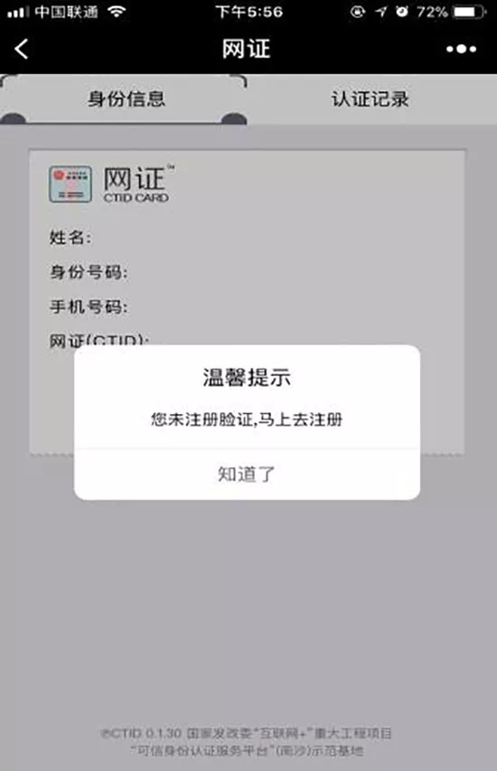 (二)进入、搜索 “网证CTID”小程序并开始注册