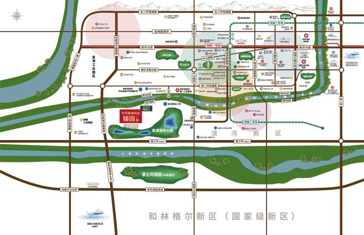 项目坐落于城南的南湖湿地公园板块。随着和林格尔云谷、敕勒川国际机场等重大工程的稳步建设,该板块凭借生态宜居、交通便利等显著优势,正逐渐成为城市南拓的核心区域。