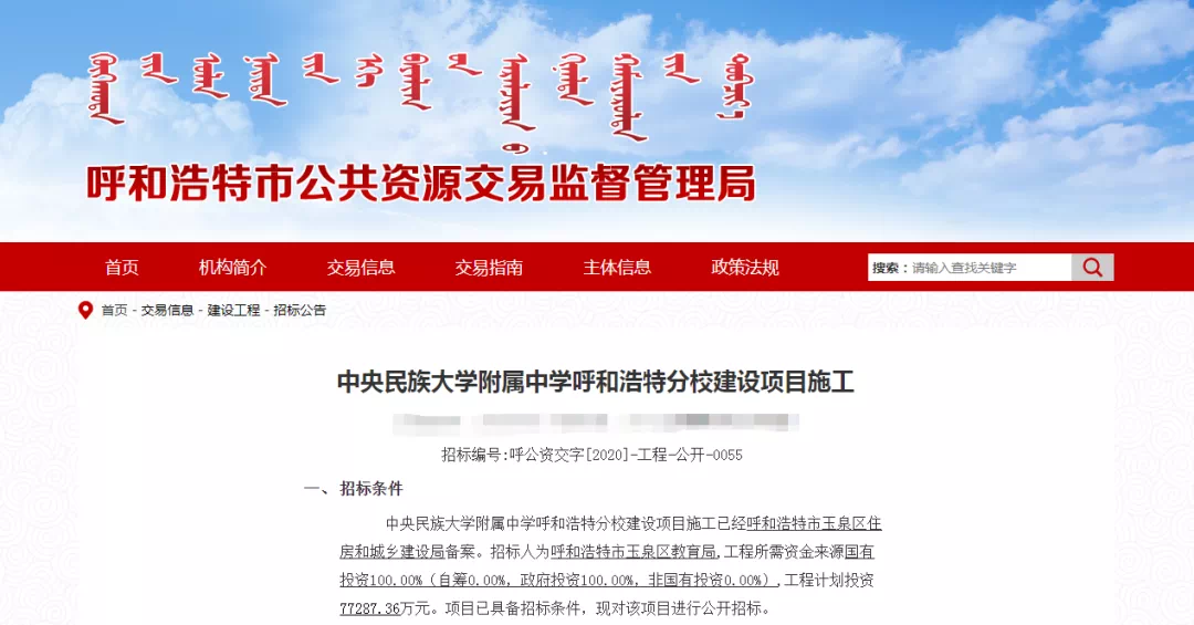 据悉,中央民大附中分校包含有附属小学、初中、高中,总投资超过8亿元,此外从本次招标信息可以看出: