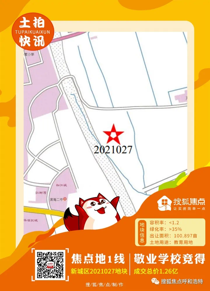 2021027号地,属于教育用地,由敬业学校摘得,未来将打造一所不少于80个班的初、高中完全中学。