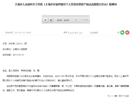 该图片在网络引起热议,不少人误以为上海在近期开始征收房产税。但实际上,从2011年起,上海继重庆之后,就已经开始推行个人住房房产税的征收试点。