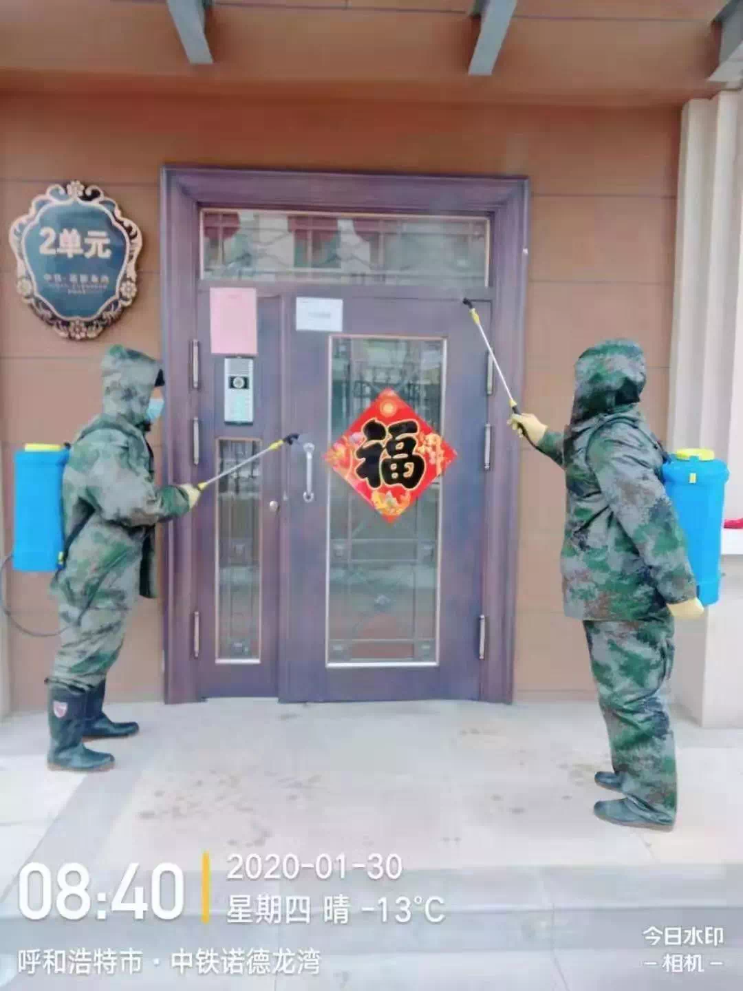 面对疫情,呼和浩特市中铁·诺德龙湾积极响应上级号召,众志成城,火速成立了以物业公司为代表的疫情防控小组,不间断的对各小区、单元进行清洁消毒,同时对小区出入人员进行体温测量,将业主的健康安全作为工作的排名前列位。