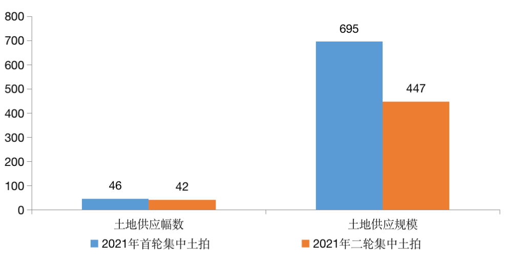 表:重庆2021年两次集中供地规模对比(幅,万平方米)