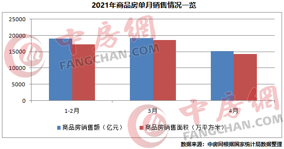 数据显示,1—4月份,商品房销售面积50305万平方米,同比增长48.1%;比2019年1—4月份增长19.5%,两年平均增长9.3%。其中,住宅销售面积增长51.1%,办公楼销售面积增长20.0%,商业营业用房销售面积增长16.3%。商品房销售额53609亿元,增长68.2%;比2019年1—4月份增长37.0%,两年平均增长17.0%。其中,住宅销售额增长73.2%,办公楼销售额增长31.9%,商业营业用房销售额增长20.3%。