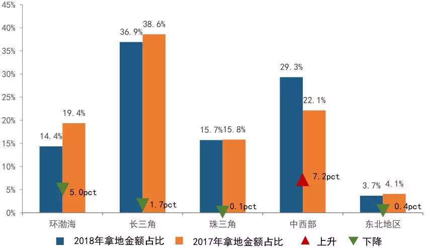 ➤ 中西部晋升为房企新贵,拿地金额不降反升