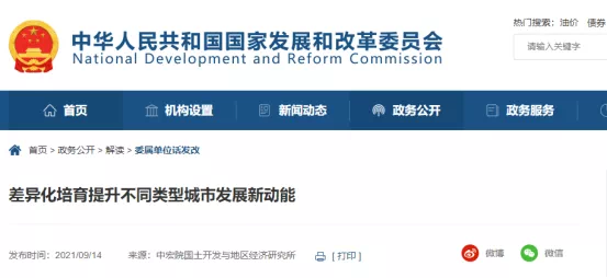 日前,国家发改委官网发布《差异化培育提升不同类型城市发展新动能》论文。文章来源“中宏院国土开发与地区经济研究所”。而“中宏院”是国家发改委直属研究机构。