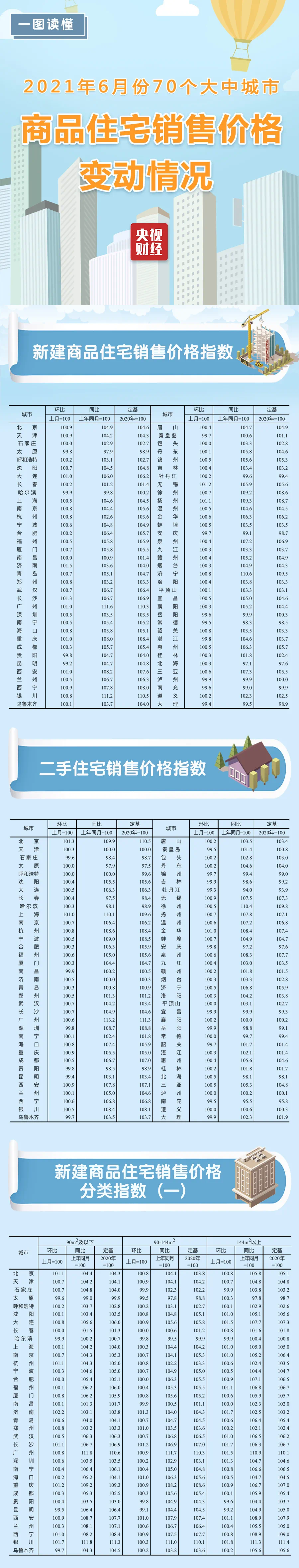 国家统计局15日发布数据显示,2021年6月份,70个大中城市商品住宅销售价格涨幅整体呈现稳中有落的态势。