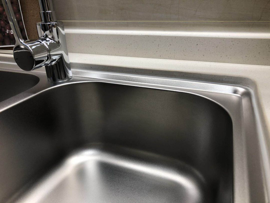 操作台边缘倾斜角设计,水流、蛋液、汤汁等,防止外流,有效防护。保持厨房清洁,只是一个斜角的距离。