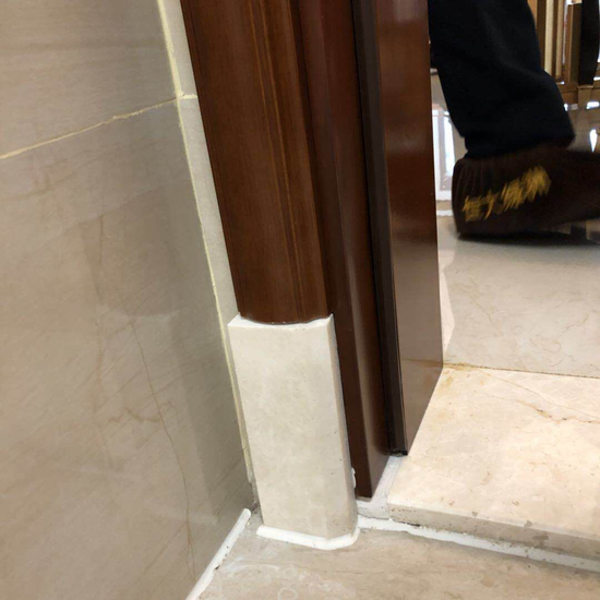 屋内门框均为实木打造,浴室门框下方大理石立面包围,防水防潮,贴心细致