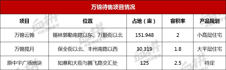 万锦,呼市人并不陌生,作为呼市本土头部地产开发商,十余年间,小黑河沿线、五里营一带,开发了观悦、枫泽湾领秀等,累计13个楼盘,2020年,万锦继续扩张,先后摘下玉泉区帅家营板块、赛罕区保全庄板块2宗住宅用地,此次拿下原中宇广场地块后,宣告进驻如意高端住宅区。根据血拼哥统计,万锦目前待开发土地达300亩以上,下阶段将成为呼市住宅供应的主力之一,加上其在本地的物业口碑,这个实力、规模,是可以和很多外阜品牌房企掰手腕儿的。