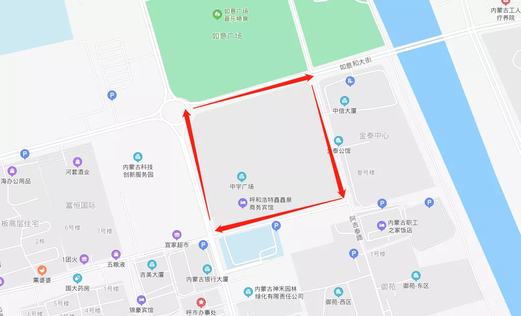 原中宇广场项目位于呼市城东如意板块,如意和大街与腾飞路交汇处,与如意广场一路之隔,周边有数十个企业事业单位,数百家企业总部落地于此,城市化水平,配套建设力度在呼市首屈一指,是名副其实的烫金地段。