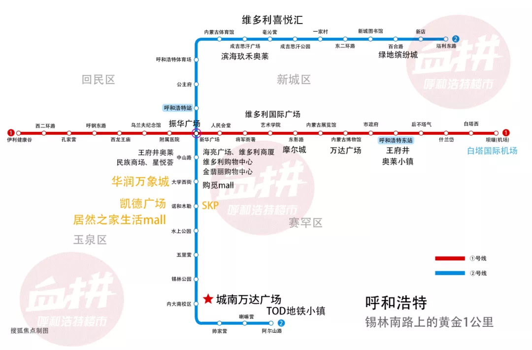 可以大胆预言,未来10年,随着呼市南拓步伐加速,商圈环伺,以地铁线为核心的锡林南路,汇聚人流、商流,论布局和发展,将迎来价值新一轮爆发,形成呼市经济发展的黄金线。