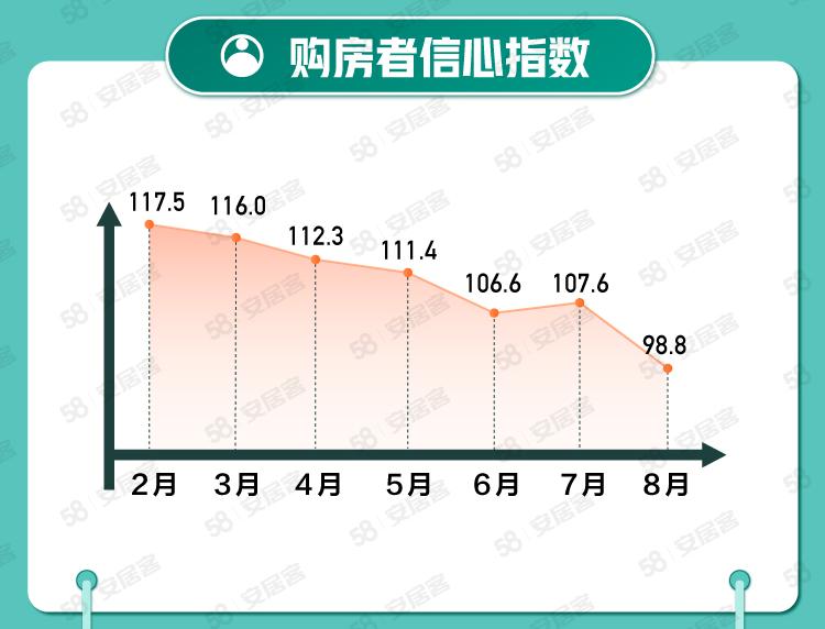通过对购房者行为调研,报告指出,8月份用户信心指数为98.8,环比下跌8.2%。认为政府会继续调控抑制房价上涨的购房者占比为65.1%,比前月上涨5个百分点;近六成购房者并不急于出手,谨慎寻找合适的房源。