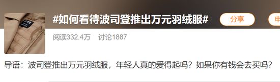 近日,波司登羽绒服万元一件登上微博热搜,网友直接炸锅了:原以为低价亲民的品牌,如今价格却让人高攀不起?有的认为直言这价格自不量力,有的认为波司登要做下一个加拿大鹅。