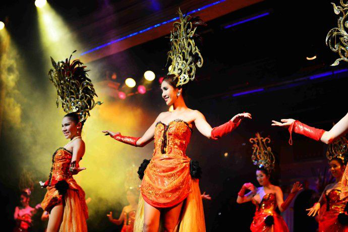 泰国人妖倾情助阵现场,载歌载舞,火辣开秀,大家能近距离欣赏艳丽、张扬的表演!
