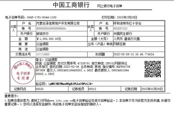 泽信地产向呼和浩特红十字会捐助100万元抗疫资金。