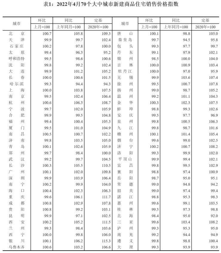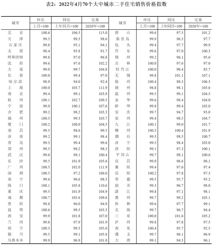 国家统计局今日(5月18日)发布的《70个大中城市商品住宅销售价格变动情况》显示,2022年4月份70个大中城市新建商品住宅价格环比上涨的城市有18个,环比下跌的城市有47个,5个城市环比持平,上个月这一数字分别为29个、38个和3个。二手住宅方面,环比上涨的城市有15个,环比下跌的城市有50个,5个城市持平,上个月这一数字分别为21个、45个和4个。