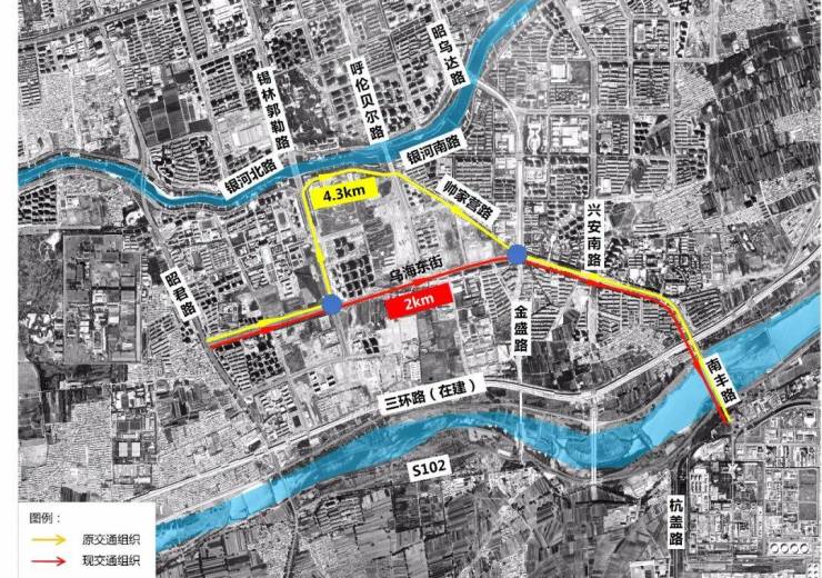 乌海东街工程,西起锡林郭勒南路,东至昭乌达路,全长2.3公里,该道路为双向8车道。该工程是大小黑河片区主要的东西向贯通主干路,向东延伸至东二环快速路,向西连接至西二环快速路,随着南部片区的开发,东西向交通需求逐渐增加,乌海东街“打通断头路” 工程, 可实现锡林南路与昭乌达路的南向连接,进一步优化城南路网大循环结构。