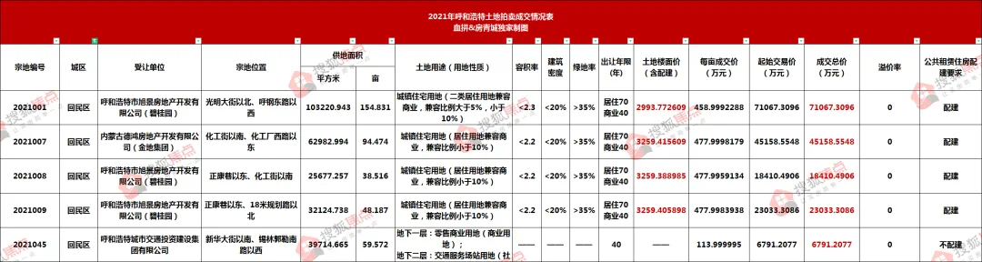 最后来看区域,呼市的城东南片区依旧是呼市外拓的热点,2021年供应土地除2021080地块流拍外,其余全部拍出,这片南连新区北接老城的区域仍是房企拓土的重要选项,2022年仍值得关注;