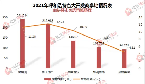 与2020年相比,2021年房企拿地数及成交额大幅下降,碧桂园全年摘下回民区3宗住宅用地,均为底价取得,规划为小高层住宅,已进入推售期,碧桂园至此在呼市完成6盘布局,进一步扩大开发规模。