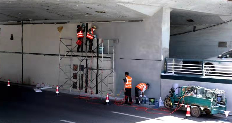 位于呼和浩特市新城区的呼伦路公铁立交桥建设于1981年,位于回民区的通道街公铁立交桥建设于1986年,两座桥均是市区南北跨铁路的重要通道,经过多年的营运,都不同程度上出现了桥体挡墙及护栏墙体脱落污损、护栏漆面锈蚀的情况。鄂尔多斯大街发展小区人行天桥位于呼市赛罕区鄂尔多斯东街,同样是市民日常通勤的交通要道,该桥自建成通行以来,由于桥面结构层抗滑性能比较差,极易造成行人摔倒等情况。