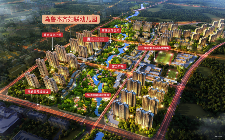 除与乌鲁木齐幼儿教育集团的战略合作外,项目西侧的重点小学作为水磨沟区2020年排名前列批市级重点项目,已于2019年3月18日开工,预计2021年9月交付投入使用。项目内部东侧即将落定重点中学,规划为36个初中班及36个高中班,集初中高中于一体的重点教育资源。届时富力城15年一站式教育体系全面落成,毫无疑问会开启会展新区教育的新序章。