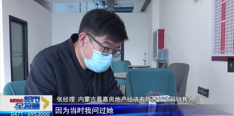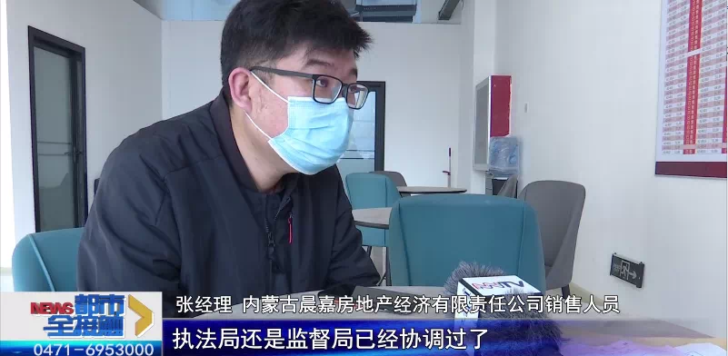 内蒙古晨嘉房地产经济有限责任公司张经理:执法局还是监督局已经协调过了,我们没啥问题,她自己说的当时就想买呢,然后说是骗我们,但是我觉得追究这些事情已经没必要了,这些话反说正说,她就是想怎么说就怎么说
