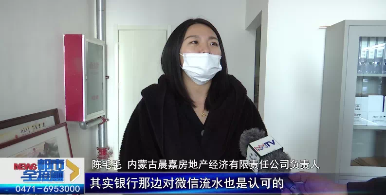 内蒙古晨嘉房地产经济有限责任公司负责人陈毛毛:可能是听其他人说微信流水不能作为流水,其实银行那边对微信流水也是认可的。