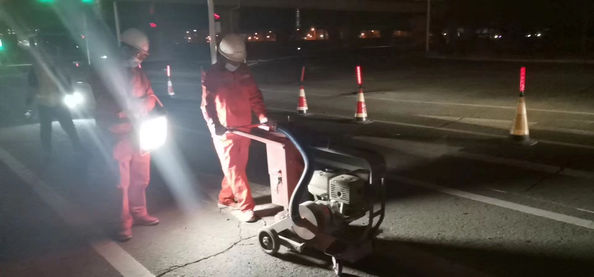夜间施工保白天畅通 万通路6万延米裂缝修补中